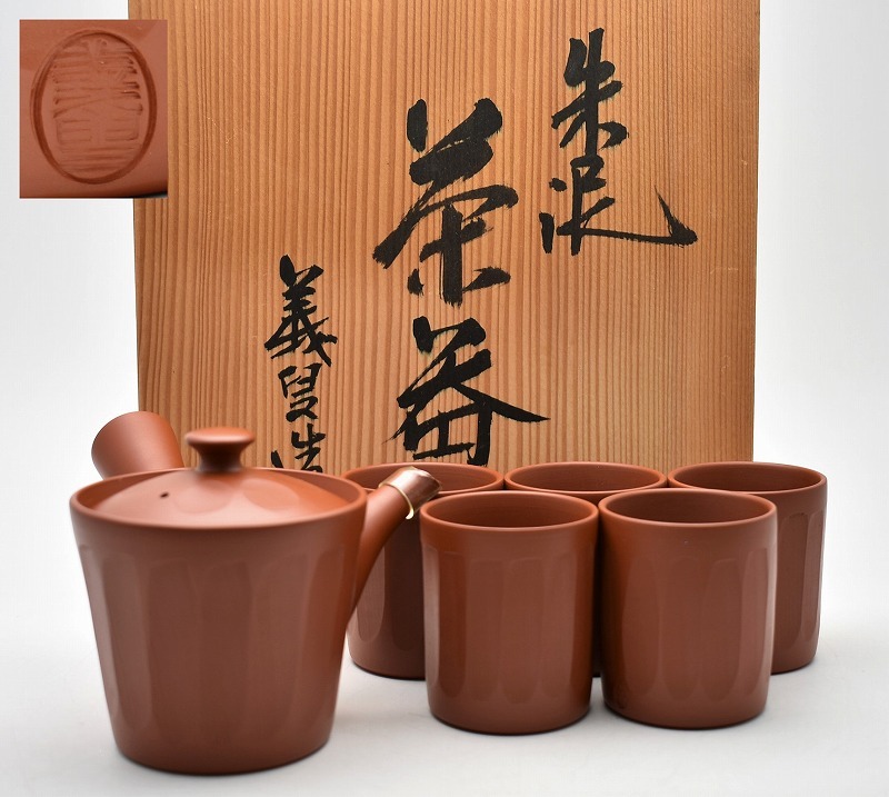 【石川県加賀市】のお客様より◆常滑焼 井上義叟 朱泥 茶器揃 横手急須 湯呑 5客◆をお買取り。