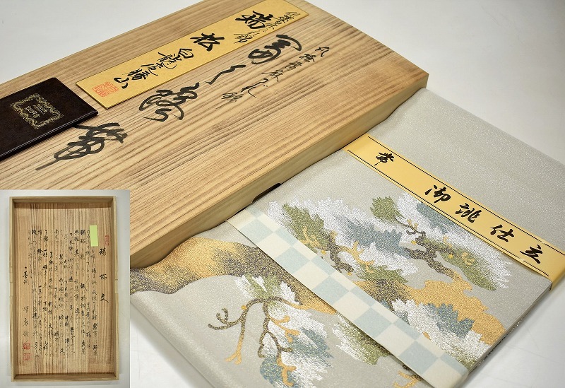 未使用美品。共箱あり。証紙あり。 メモリヤンコート着物帯 着物買取