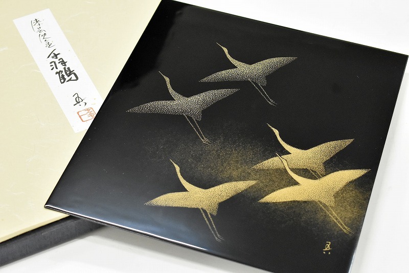 【石川県輪島市】のお客様より◆輪島塗巨匠 文化功労者 三谷吾一 千羽鶴 沈金 漆板◆をお買取り。