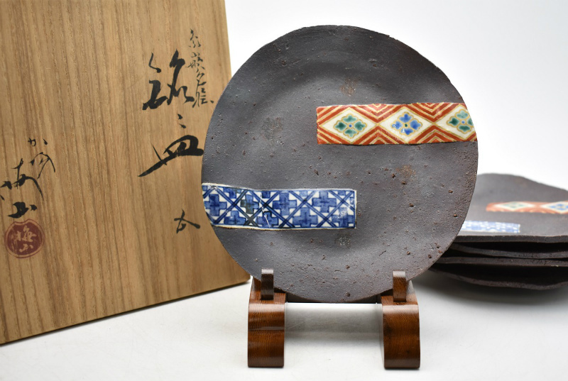 【石川県野々市市】のお客様より◆九谷焼 中村梅山 象嵌 色絵 銘々皿 5客◆をお買取り。