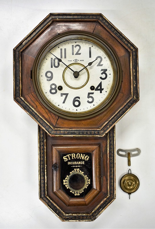 石川県金沢市のお客様に出張買取にてご依頼頂き、アンティーク STRONG INSURANOE 八角型 振り子時計を買取りさせていただきました。