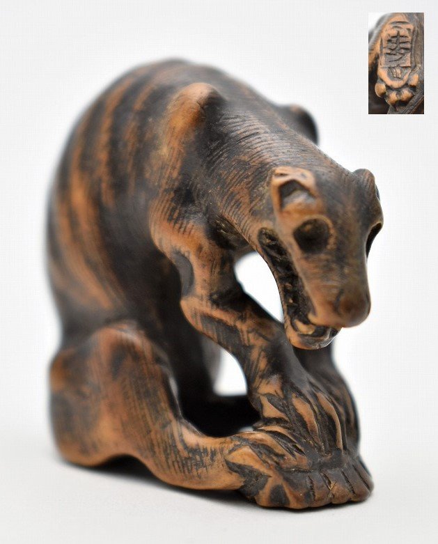 石川県金沢市のお客様に出張買取にてご依頼頂き、在銘 時代 提物 細密彫刻 幻獣 バク 獏と亀 根付を買取りさせて頂きました。