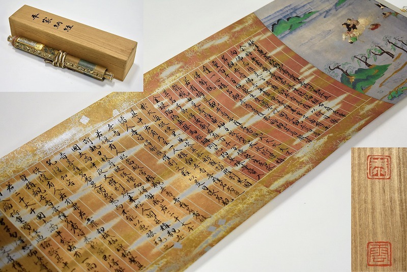 石川県金沢市のお客様より出張買取にてご依頼頂き、完全復元 複製 平家納経 観音品 一巻 平安時代古写経巻物を買取りさせていただきました。