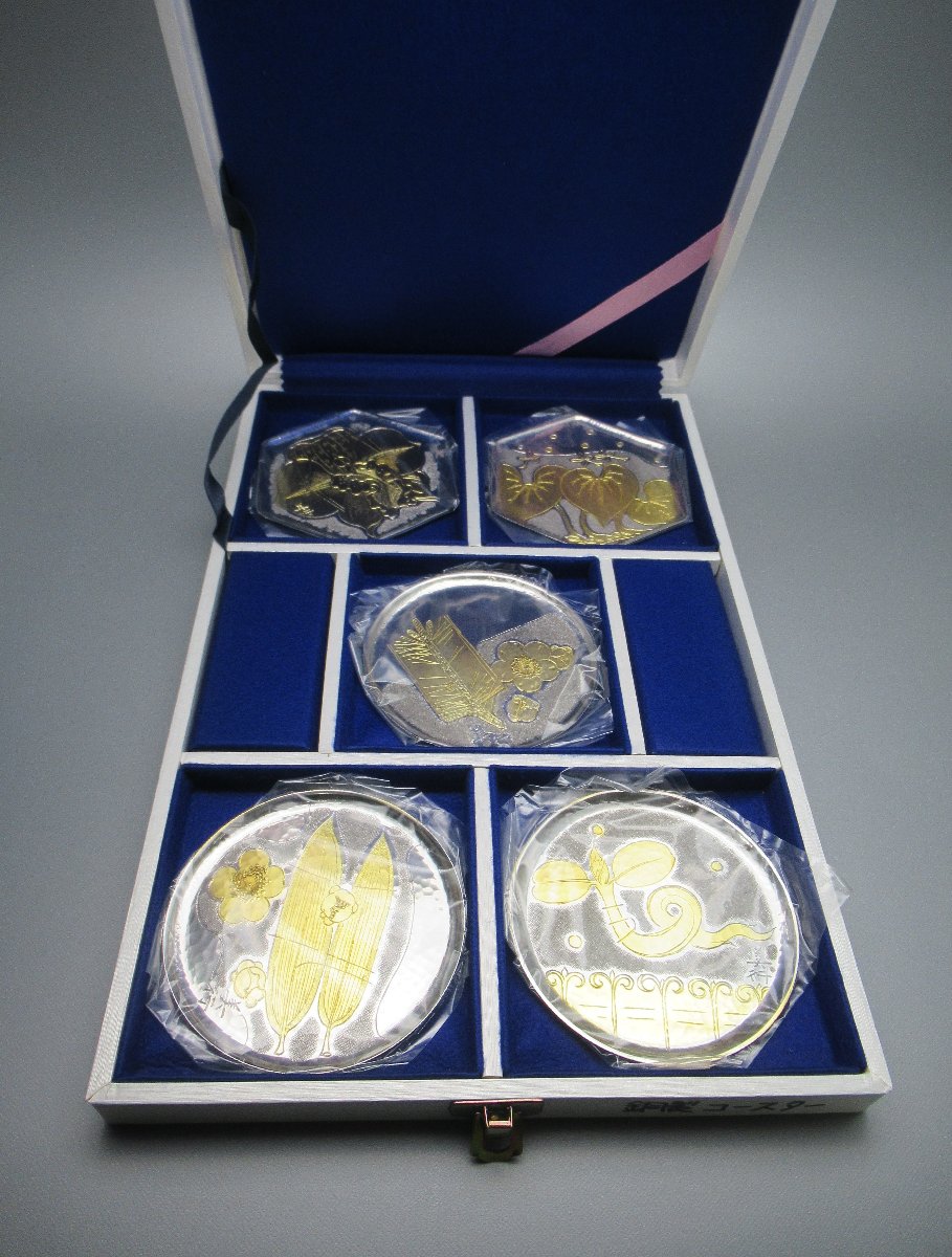 福井県福井市のお客様に出張買取にてご依頼頂き、文化勲章受章 彫金家 帖佐美行 清寿想 絵変わり 彫金 コースターを買取りさせて頂きました。