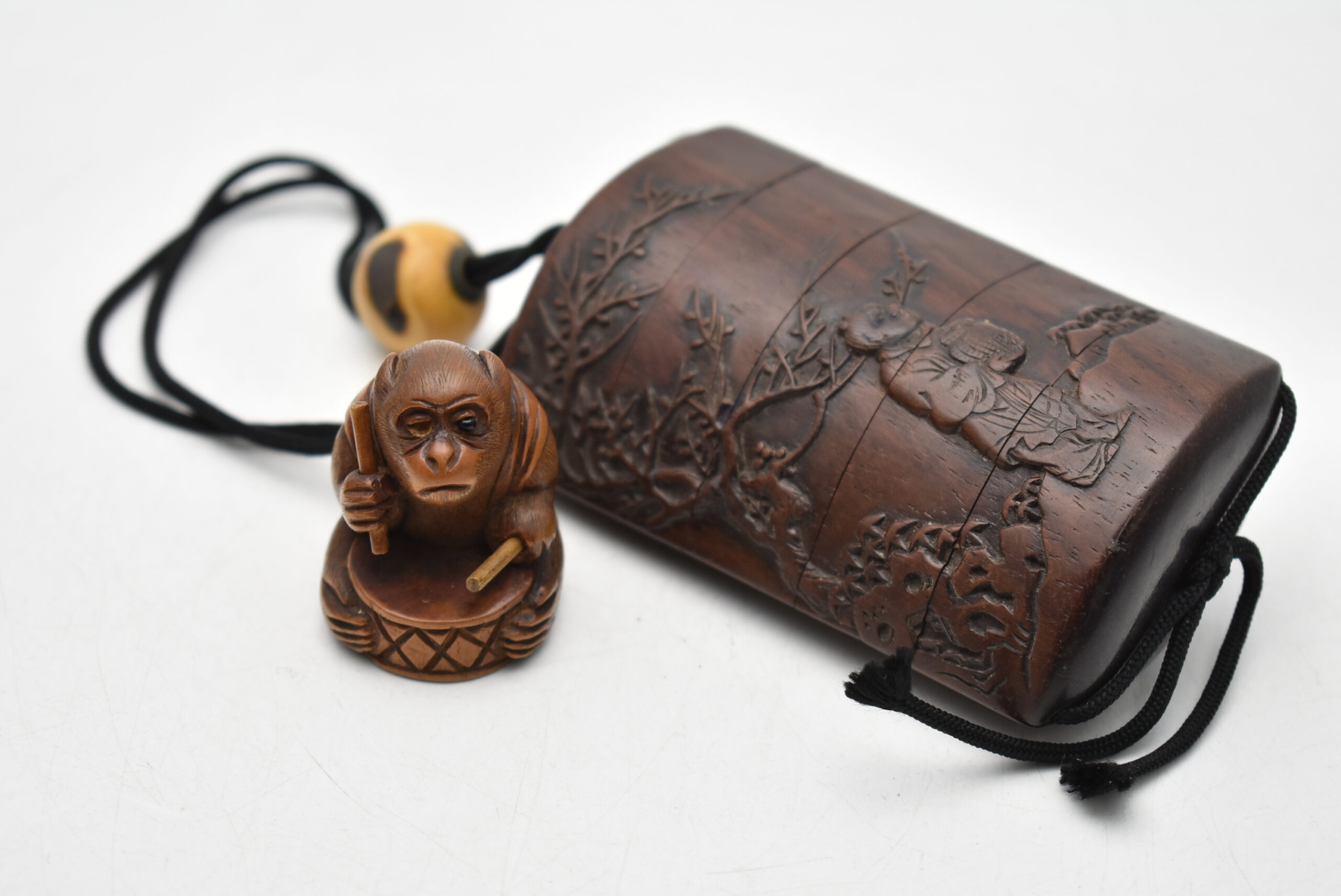 【福井県福井市】のお客様より◆時代 猿の太鼓打根付 唐子山水図印篭◆をお買取り。
