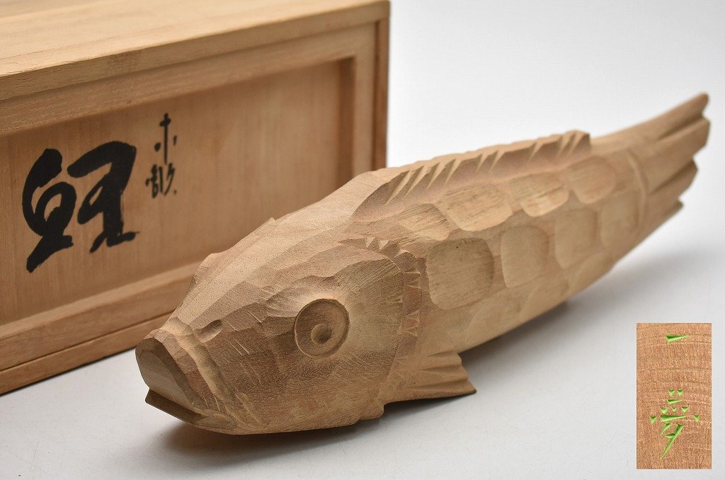 石川県金沢市のお客様に出張買取にてご依頼頂き、富山県無形文化財 井波彫刻 横山一夢 木彫 鯉 置物を買取りさせて頂きました。