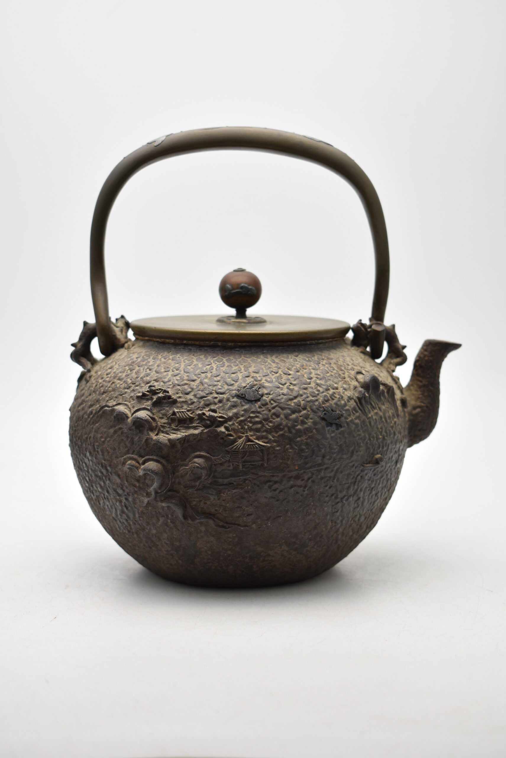 福井県福井市◆時代 亀文堂造 楼閣山水千鳥紋 鉄瓶◆をお買取り。