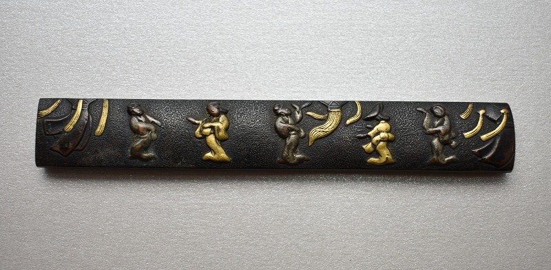 福井県福井市のお客様に出張買取にてご依頼頂き、時代物 刀装具 拵え 盛象嵌 踊子図 人物図 小柄を買取りさせて頂きました。
