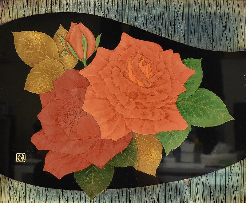 石川県金沢市のお客様に店頭買取にてご来店頂き、輪島塗 井波唯志 薔薇之図 漆芸額を買取りさせて頂きました。