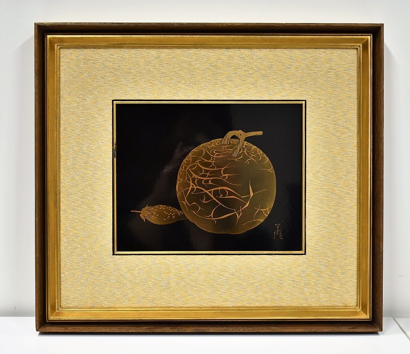 輪島塗買取【石川県加賀市】のお客様より◆石川県無形文化財 小松芳光 蒔絵 メロン 漆額◆をお買取り。
