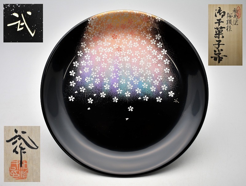 石川県金沢市のお客様より店頭買取にてご来店頂き、日展作家 輪島塗 加治武 沈金 桜模様 夜桜 御干菓子器を買取りさせていただきました。