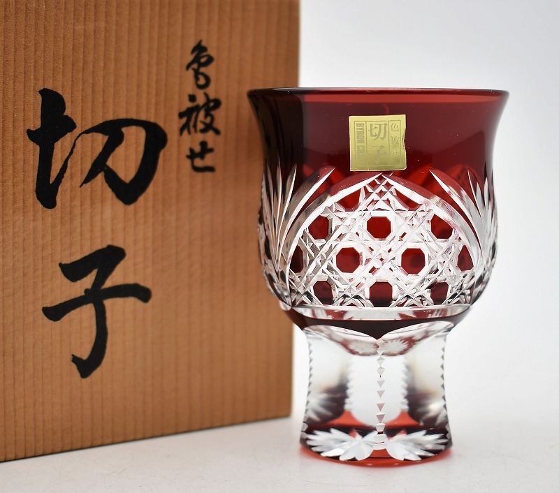洋食器買取【石川県金沢市】のお客様より◆広田硝子 HIROTA GLASS 江戸切子 赤色被せ 盃 酒器◆をお買取り。