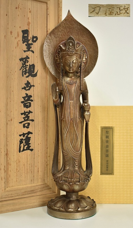 古美術買取【石川県七尾市】のお客様より◆文化勲章受章作家 彫刻家 澤田政廣 聖観世音菩薩 仏像 ブロンズ像◆をお買取り。