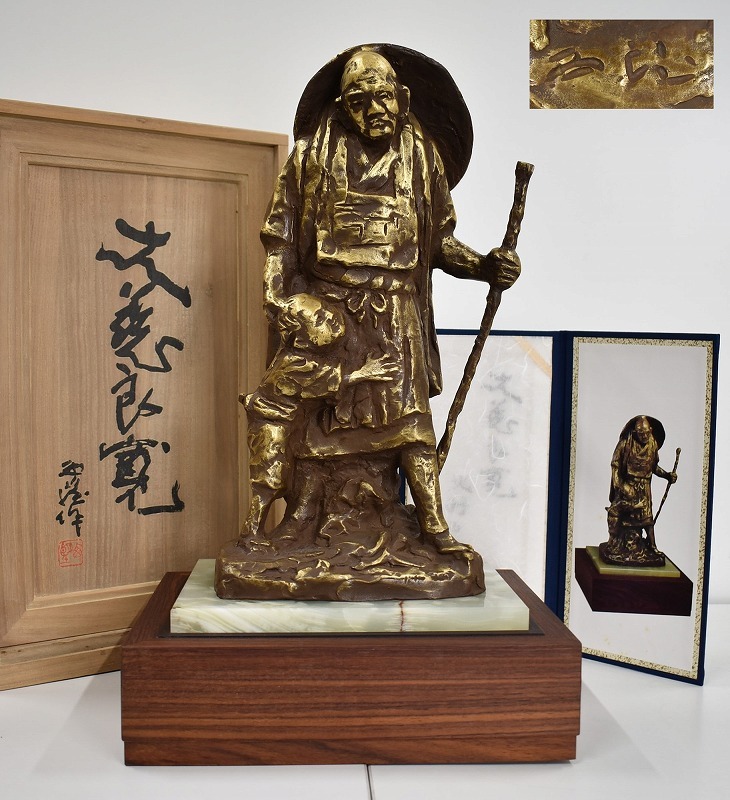 骨董品買取【石川県七尾市】のお客様より◆文化勲章受章作家 彫塑家 北村西望 大慈良寛 銅製 ブロンズ像◆をお買取り。