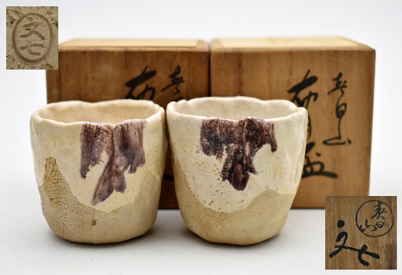 骨董品買取【石川県金沢市】のお客様より◆春日山 開発文七 布目盃 酒器 酒盃 ぐい呑み 2客◆をお買取り。
