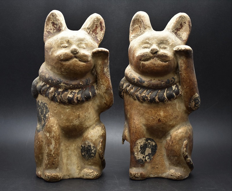 骨董品買取【福井県坂井市】のお客様より◆時代物 土人形 招き猫 2点◆をお買取り。