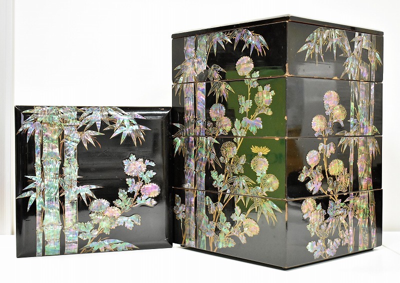 古道具買取【石川県金沢市】のお客様より◆時代漆器 螺鈿細工 四段重 重箱◆をお買取り。