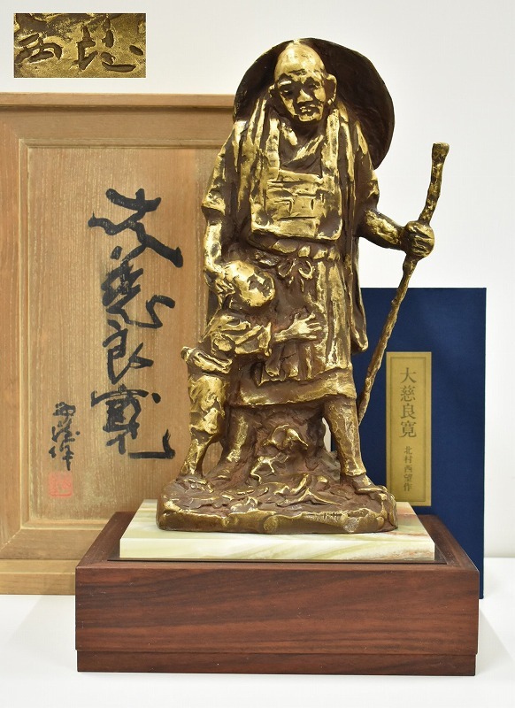 アンティーク買取【富山県高岡市】のお客様より◆文化勲章受章作家 彫塑家 北村西望 大慈良寛 ブロンズ像◆をお買取り。