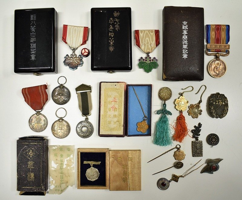 古道具買取福井家越前市◆当時物 旧日本軍 勲章 徽章 支那事変従軍記章 勲八等白色桐葉章 大日本武徳会 他◆をお買取り。