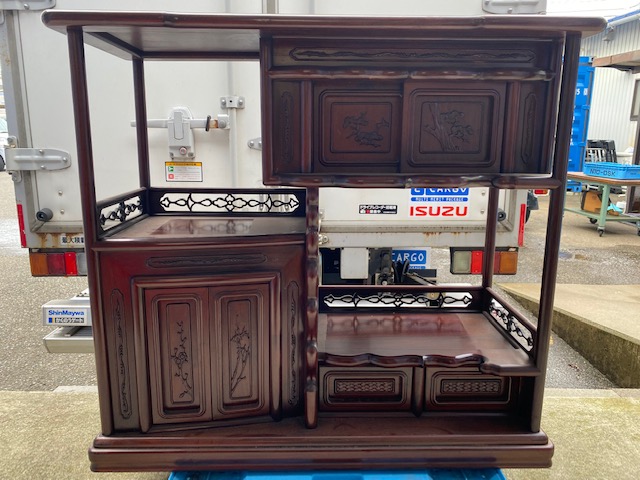 石川県金沢市のお客様より出張買取にてご依頼頂き、唐木 無垢 透かし彫り茶棚茶箪笥を買取りさせていただきました。