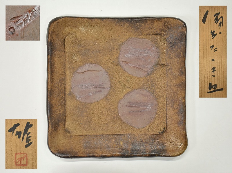 古美術買取【富山県小矢部市】のお客様より◆人間国宝 備前焼 藤原雄 たたき皿 角皿 四方皿◆をお買取り。