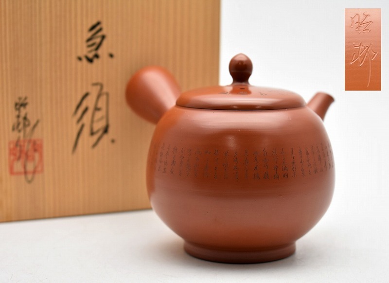 石川県金沢市のお客様より店舗買取にてご来店頂き、常滑焼 沢田昭邨 細密漢詩彫 朱泥 横手 急須を買取りさせていただきました。