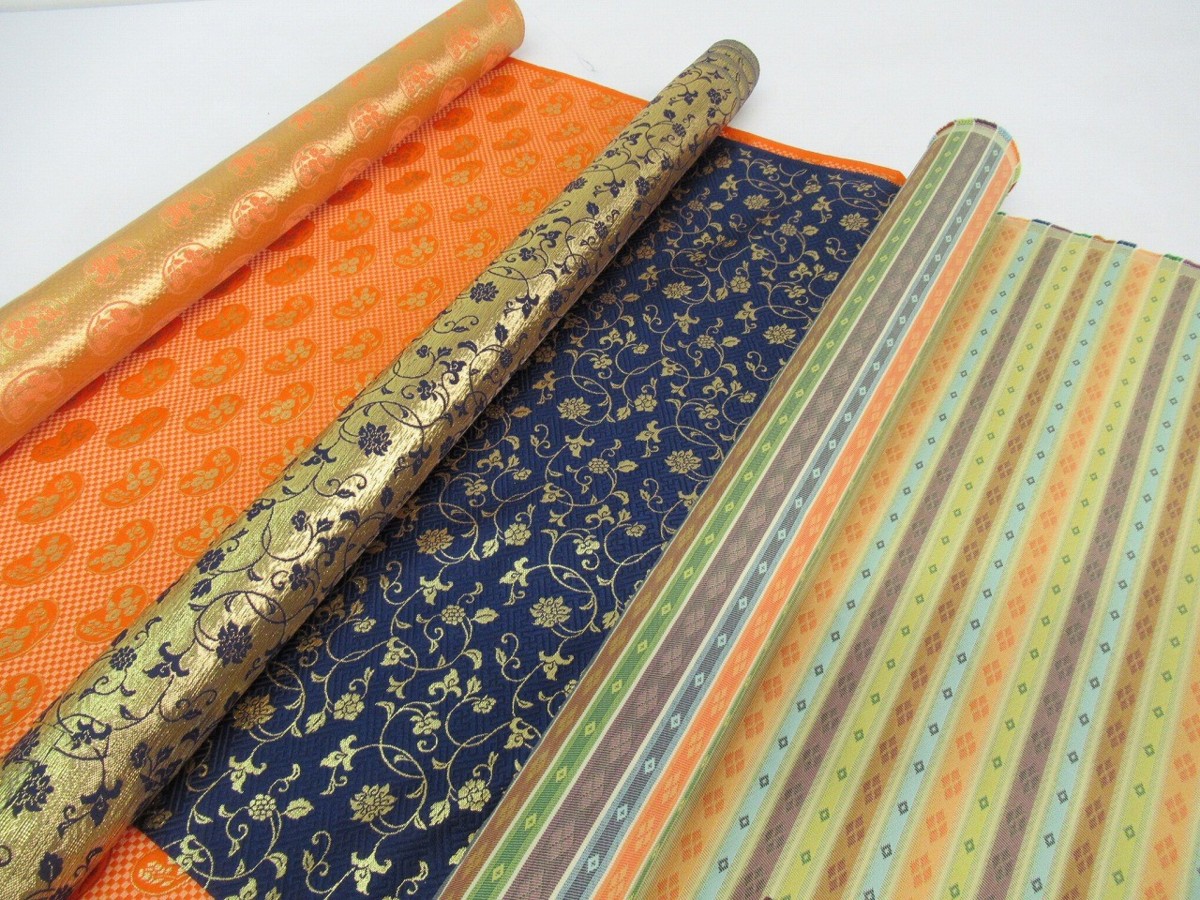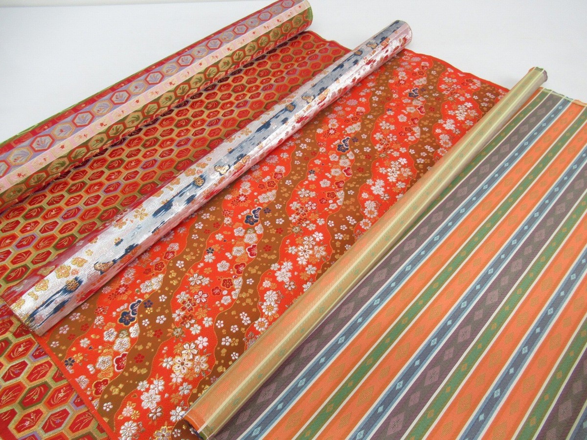 和装小物買取【石川県金沢市】のお客様より◆金襴 金糸 生地 3点 ハギレ 繧繝 唐草紋 市松に草花模様等まとめて◆をお買取り。