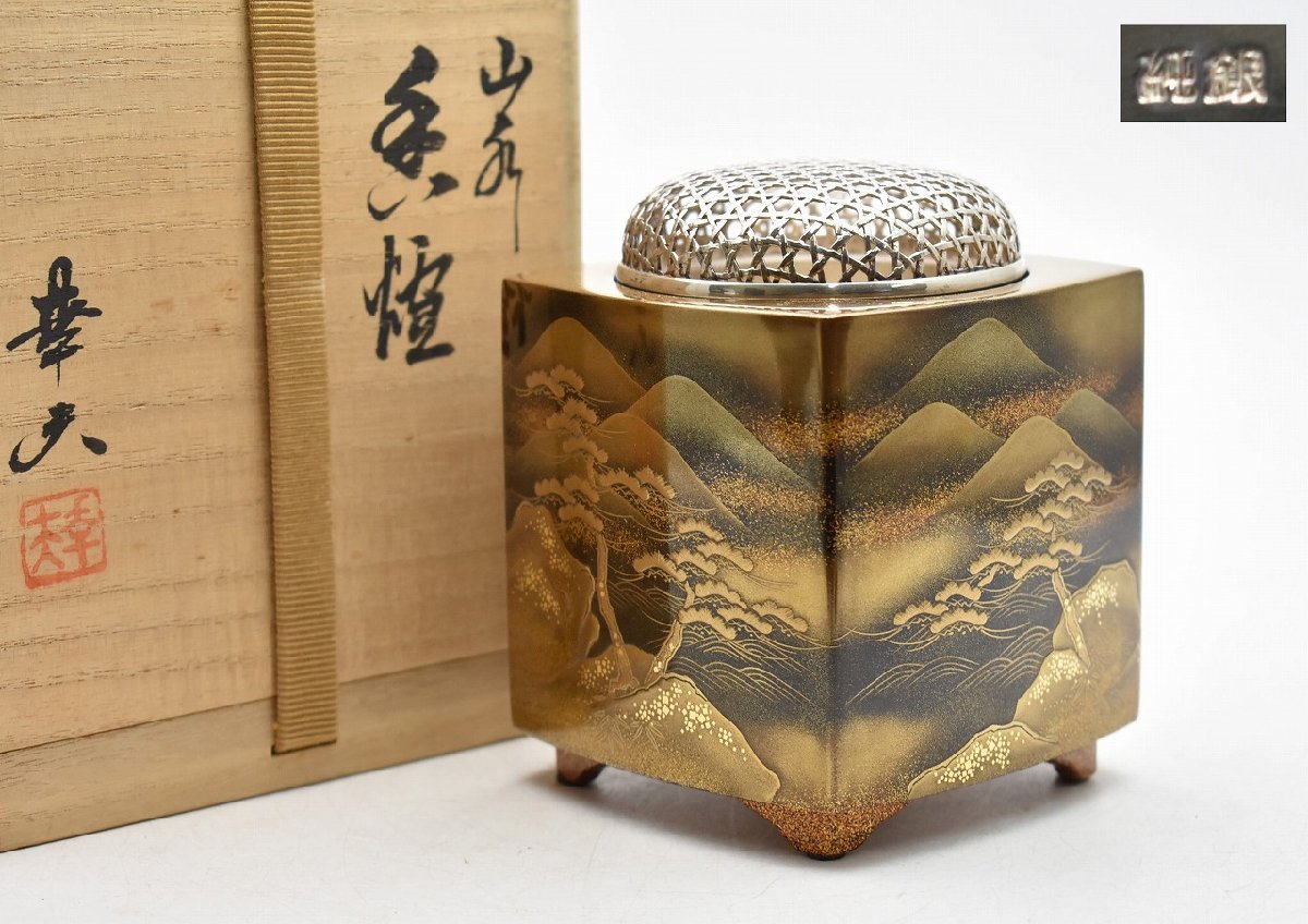 石川県輪島市のお客様に来店にて、輪島塗 蒔絵師 長井幸夫 山水蒔絵 香炉買取しました。