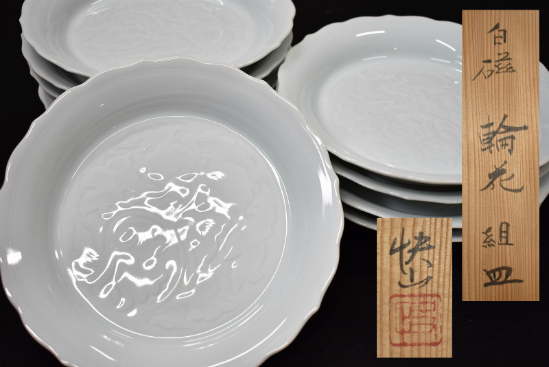 古美術買取【福井県あわら市】のお客様より◆人間国宝 塚本快示 白磁 輪花 組皿 中皿◆をお買取り。