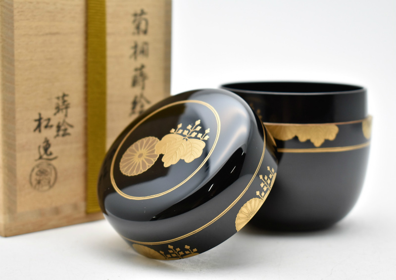 九谷焼・輪島塗【石川県かほく市】のお客様より◆加賀蒔絵 蒔絵師 西村松逸 菊桐蒔絵 棗 ◆をお買取り。