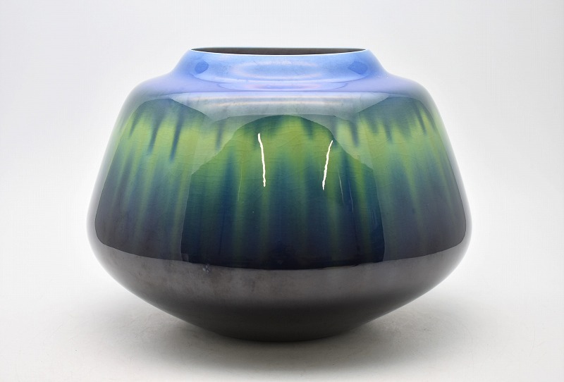 九谷焼・輪島塗【石川県小松市】のお客様より◆人間国宝 九谷焼 徳田正彦 三代 徳田八十吉 碧明釉 壷◆をお買取り。