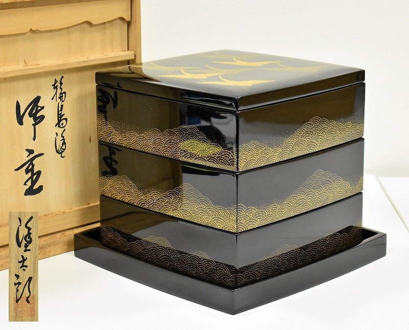 石川県小松市のお客様に店頭買取にてご来店頂き、輪島塗 塗師 塗太郎 沈金師 吠木正樹 鶴青海波文 御重を買取りさせて頂きました。