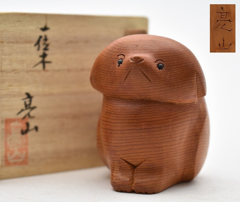 石川県白山市のお客様より出張買取にてご依頼頂き、飛騨彫刻 一位一刀彫 野中亮山 かわいい 小いぬ 小犬 一位木 木彫 置物を買取りさせていただきました。