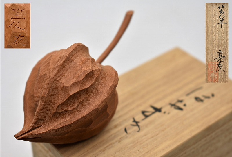 古美術買取【石川県白山市】のお客様より◆飛騨彫刻 一位一刀彫 津田亮友 ほおずき 木彫 置物◆をお買取り。