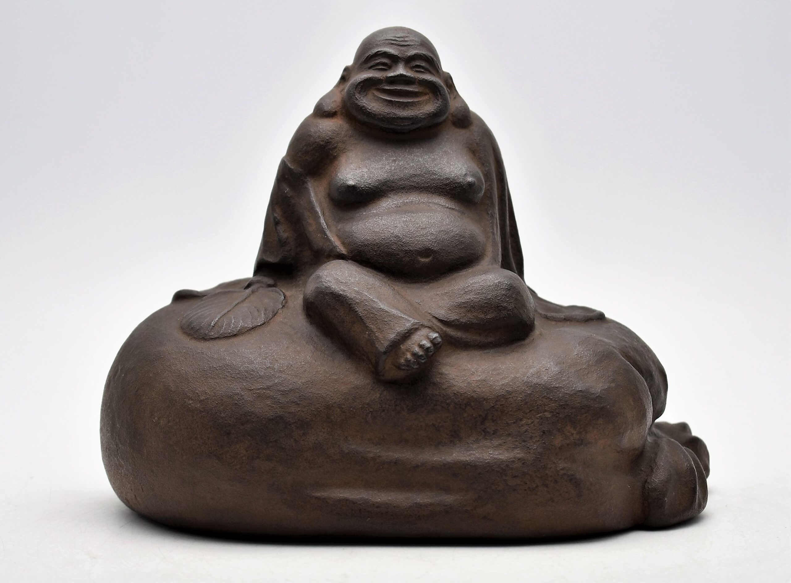 古美術買取【石川県加賀市】のお客様から◆加賀の鍛金家 黒瀬宗世作 鉄打出布袋置物◆をお買取り。