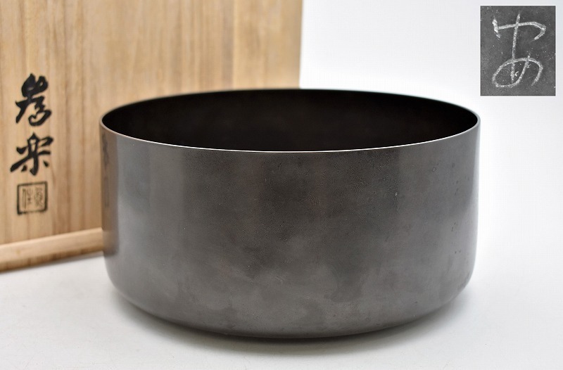 薄い鉄板一枚から鎚で打ち形成する他には類を見ない、師である山田宗美が発明した鉄打出技法が見事です。見た目からは想像がつかない程軽いです。共箱あり。