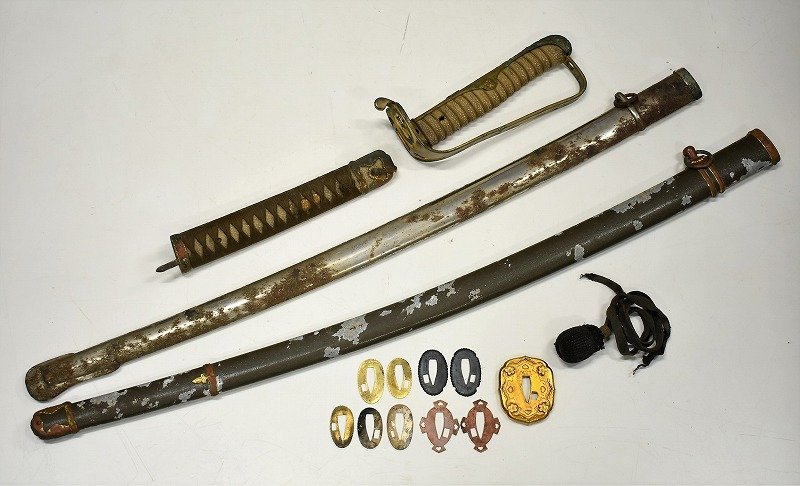 福井県鯖江市のお客様に出張買取にてご依頼頂き、旧日本軍 陸軍 海軍 指揮刀 サーベル 鞘 拵え 鍔 刀装具を買取りさせて頂きました。