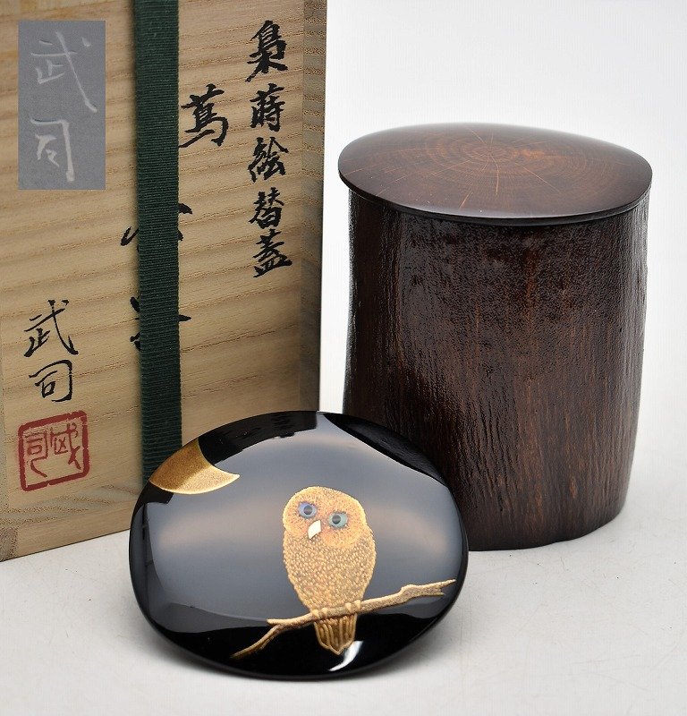 茶道具買取石川県白山市◆加賀蒔絵師 松山武司 梟蒔絵替蓋 蔦 茶器 茶入◆をお買取り。