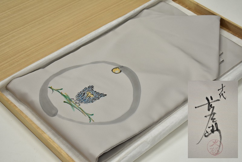 石川県金沢市のお客様に出張買取にてご依頼頂き、十代 大樋長左衛門画 (大樋年朗) 梟 ふくろう 名古屋帯を買取りさせて頂きました。