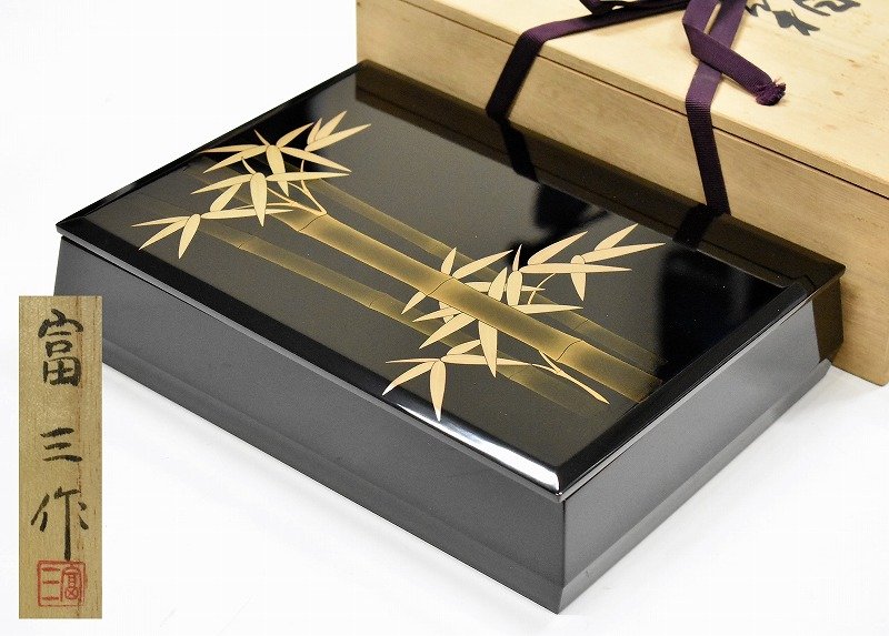 古道具買取【石川県七尾市】のお客様より◆輪島塗 塗師 光広富三 大向高洲堂 竹蒔絵 文箱◆をお買取り。