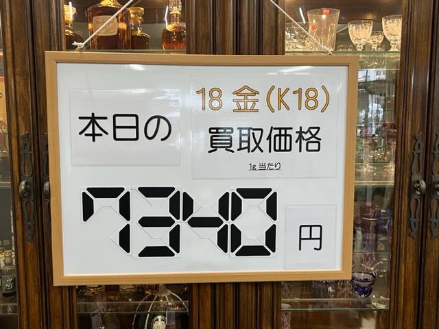 金買取本日の【18金】の店頭買取価格です。