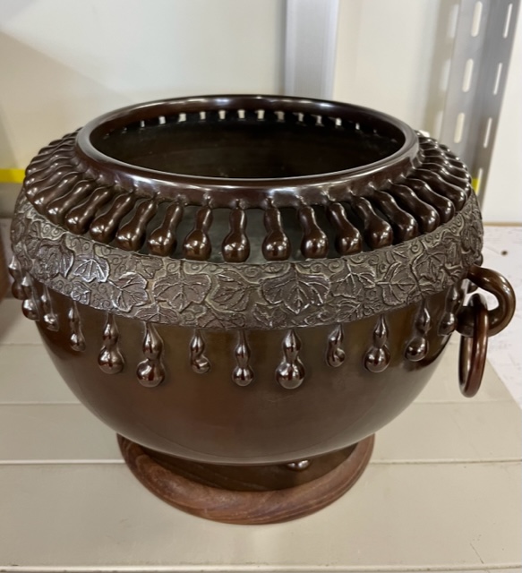 福井県鯖江市のお客様に出張買取にてご依頼頂き、金工師 名工 中川浄益造 瓢箪紋 銅火鉢を買取りさせて頂きました。