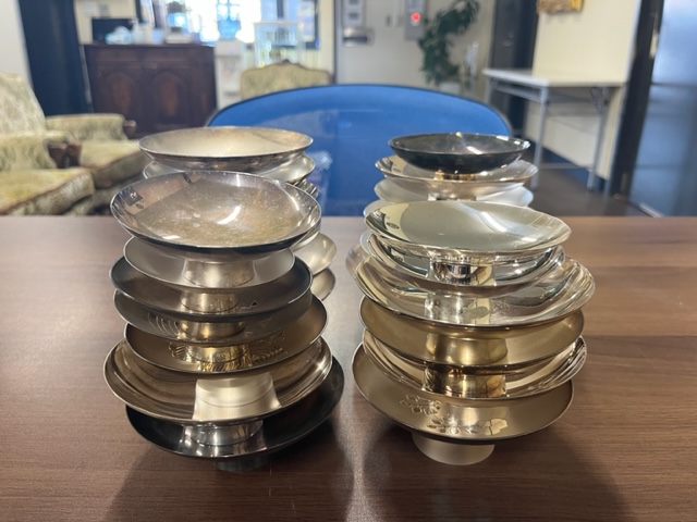 銀製品買取福井県福井市◆記念品 純銀杯 純銀刻印 銀杯大量◆をお買取り。