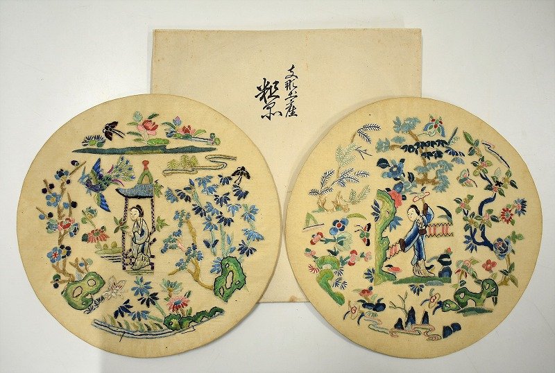 中国美術買取【福井県坂井市】のお客様より◆中国美術 支那土産 刺繍画 円窓 美人図刺繍絵◆をお買取り。