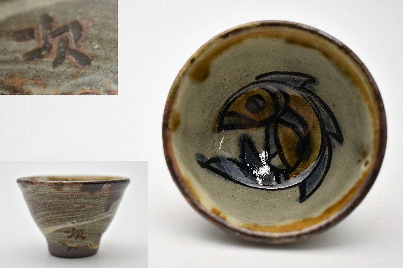 骨董品買取【福井県福井市】のお客様より◆人間国宝 壺屋焼 壷屋焼 金城次郎 魚紋 魚文 酒盃◆をお買取り。