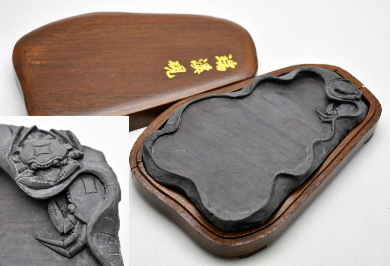 中国美術 中国美術買取 古道具・骨董・古美術 古道具買取 骨董品買取【福井県鯖江市】のお客様より◆書道具 端渓硯 彫刻 蟹図 木製硯箱◆をお買取り。