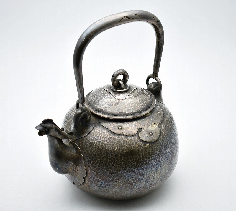 中国美術 古美術買取 古道具買取 煎茶道具買取 茶道具買取【福井県福井市】のお客様から◆釜師 十代名越昌晴(弥五郎)鳳凰口宝珠形銀瓶◆をお買取り。