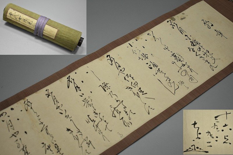 掛け軸買取 書買取【石川県白山市】のお客様より◆江戸中期 女流俳人 加賀千代女 花押 月見句章 巻物◆をお買取り。