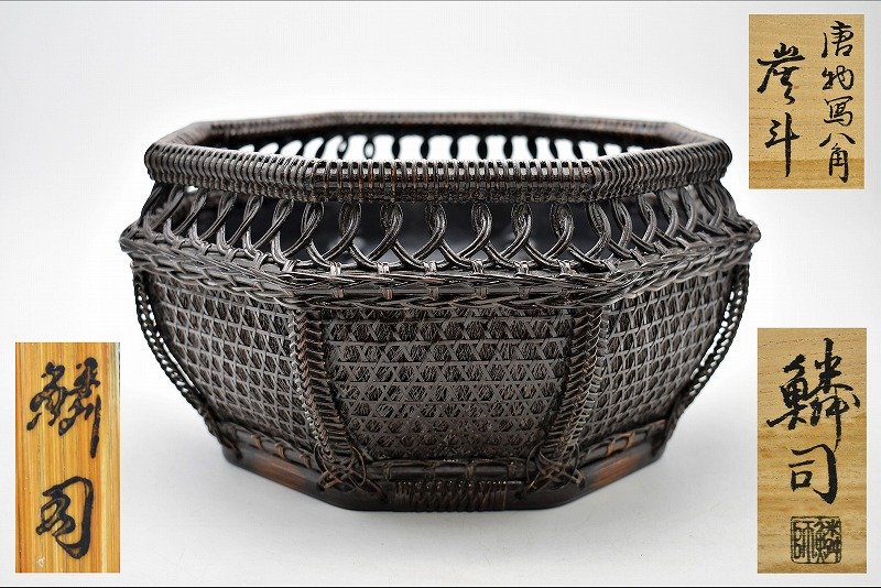 石川県金沢市のお客様に出張買取にてご依頼頂き、籠師 和田鱗司 唐物写 八角 炭斗 炭取 竹籠を買取りさせて頂きました。