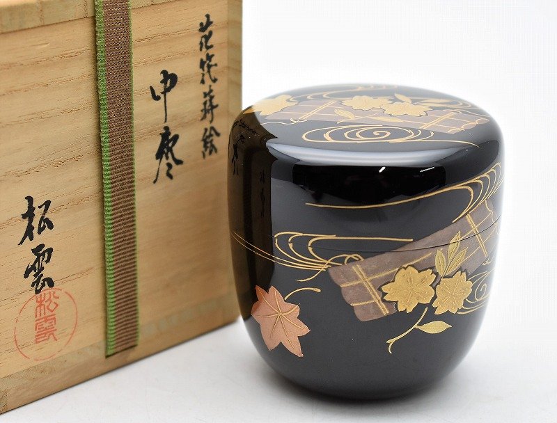 茶道具買取 輪島塗買取【石川県かほく市】のお客様より◆輪島塗 塗師 西村松雲 花筏蒔絵 中棗◆をお買取り
